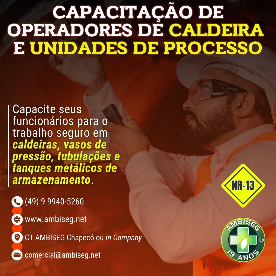 Empresas que utilizem vasos de pressão que se enquadrem nas categorias I e II, de acordo com a metodologia descrita na NR-13 devem capacitar seus trabalhadores para operação segura.