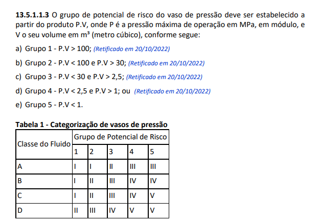 2.1 A operação de unidades de processo que possuam vasos de pressão de categorias I ou II deve ser feita por profissional com treinamento de segurança na operação de unidades de processos.